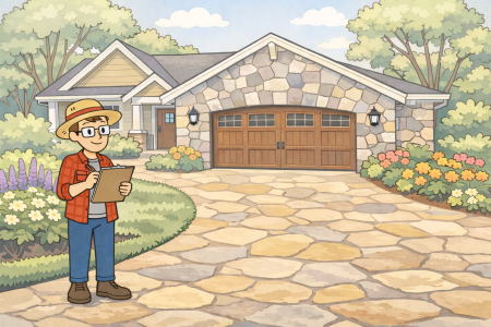 | ※土間コンクリート仕上げのみより→自然石貼りが高価です。 |